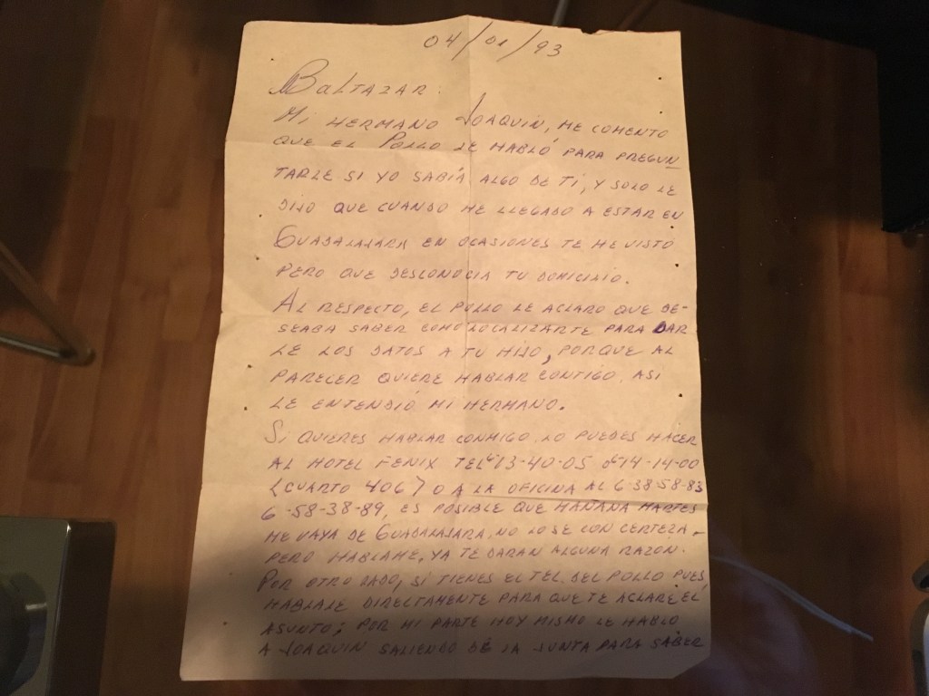 Mi hermano Joaquín me comentó que El Pollo le habló para preguntarle si yo sabía algo de ti, y sólo le dijo que cuando he llegado a estar en Guadalajara en ocasiones te he visto, pero que desconocía tu domicilio.