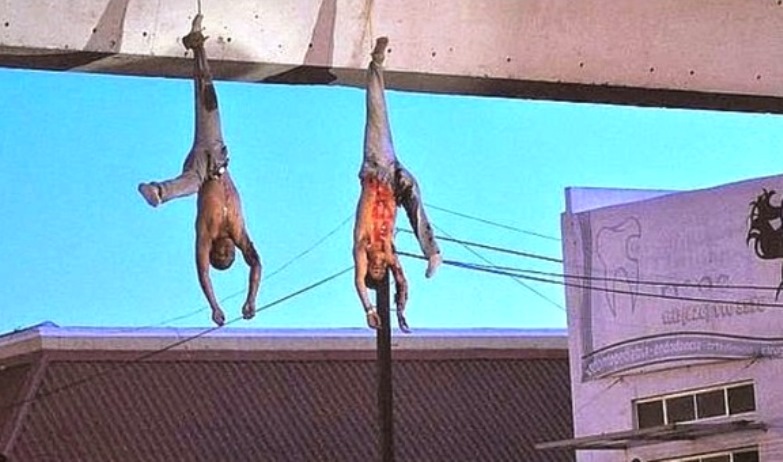 Manos, pies, rodillas, piernas, brazos…todo eso trozado a golpes de machete, hacha o cuchillos de exploradores, mientras un idiota que no es capaz de escribir su nombre sin faltas de ortografía hace escarnio del dolor o la entereza de otro idiota que de estar en su lugar haría lo mismo.